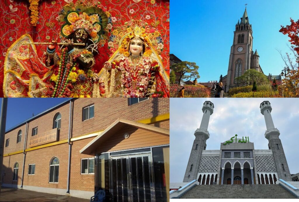 Korea also features major churches such as Myeongdong Cathedral, Sarang Church, and Yoido Full Gospel Church.